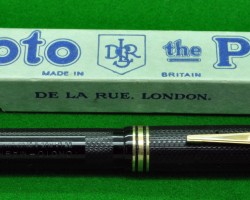 Originally an extremely successful colour printing company the business went from strength to strength in the early 1800's, mainly due to it's Playing card business and by 1833 it was able to move into impressive accommodation in Finsbury London. Soon after The business moved into stationary and were awarded a four year contract with the board of the inland revenue to produce stamps By the late 1880's De La Rue were producing their first writing instruments. Initially producing Hard rubber Stylographs and Eyedroppers the company then invented it's own filling system which became extremely successful by 1912. Early Piston fills and the later extremely high quality leverfill are much sought after. Onoto de la Rue's have exceptionally high quality nibs.